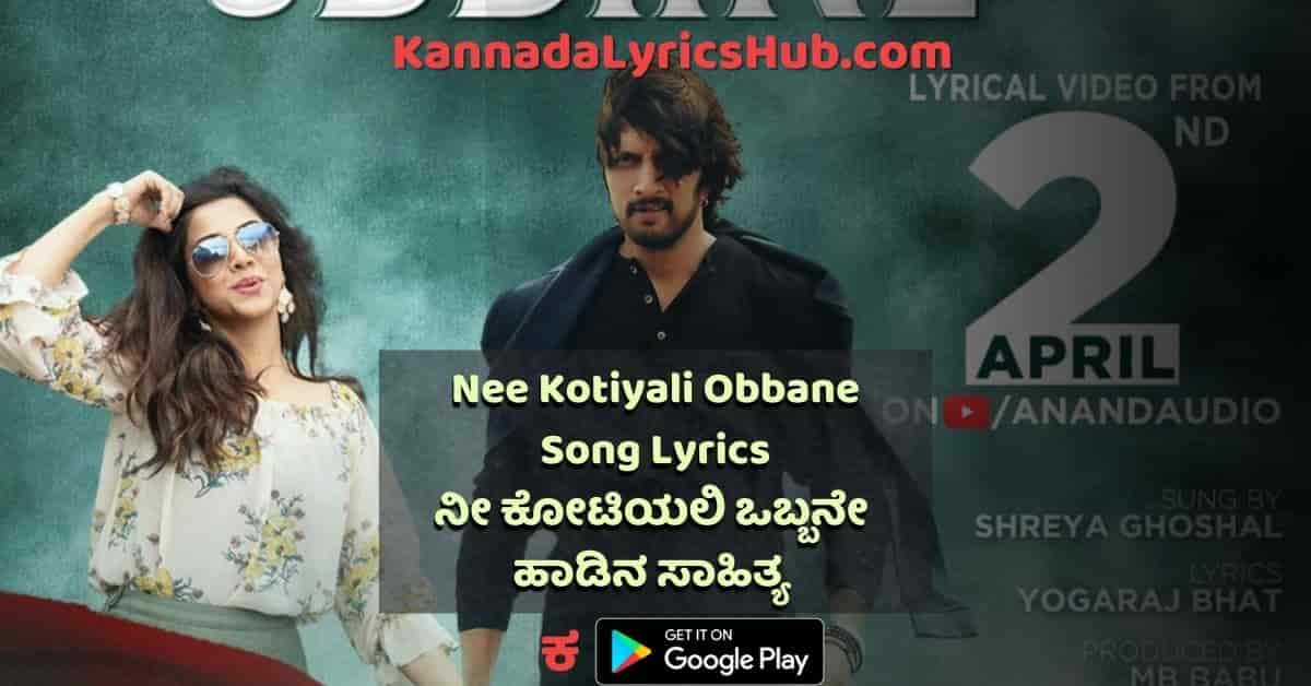 Nee Kotiyali Obbane Lyrics in Kannada