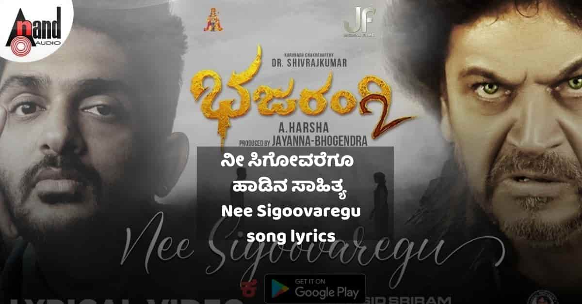 Nee Sigoovaregu Lyrics are penned by K Kalyan. The song is sung by Sid Sriram. Nee Sigoovaregu lyrics are from the movie Bhajarangi 2 starring Shiva Rajkumar, Bhavana Menon, Shruthi, Saurav Lokesh. Bhajarangi 2 released in 2021 and the movie is directed by A. Harsha. and produced by Jayanna – Bhogendra. The music for the movie is composed by Arjun Janya. Nee Sigoovaregu lyrics in Kannada and English is given below.
