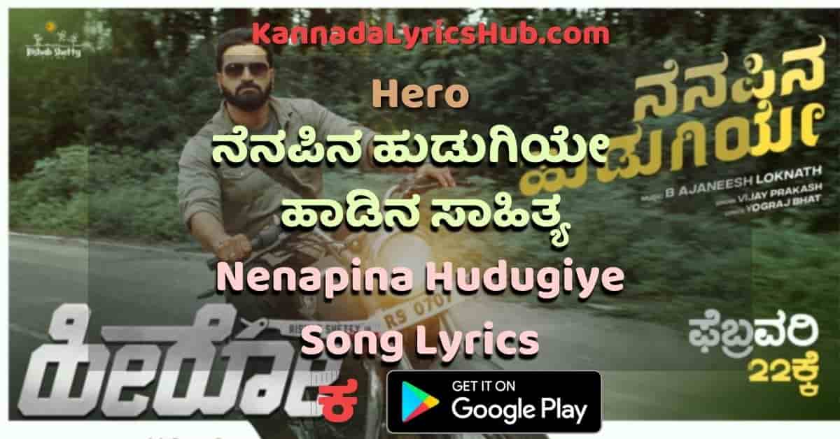 Nenapina Hudugiye Song Lyrics are penned by Yogaraj Bhat. The song is sung by Vijay Prakash. Nenapina Hudugiye lyrics are from the movie Hero starring Rishab Shetty, Ganavi Laxman, Pramod Shetty, Manjunath Gowda. Hero released in 2021 and the movie is directed by M Bharath Raj. and produced by Rishab Shetty. The music for the movie is composed by Ajaneesh Loknath. Nenapina Hudugiye Song Lyrics in Kannada and English is given below.